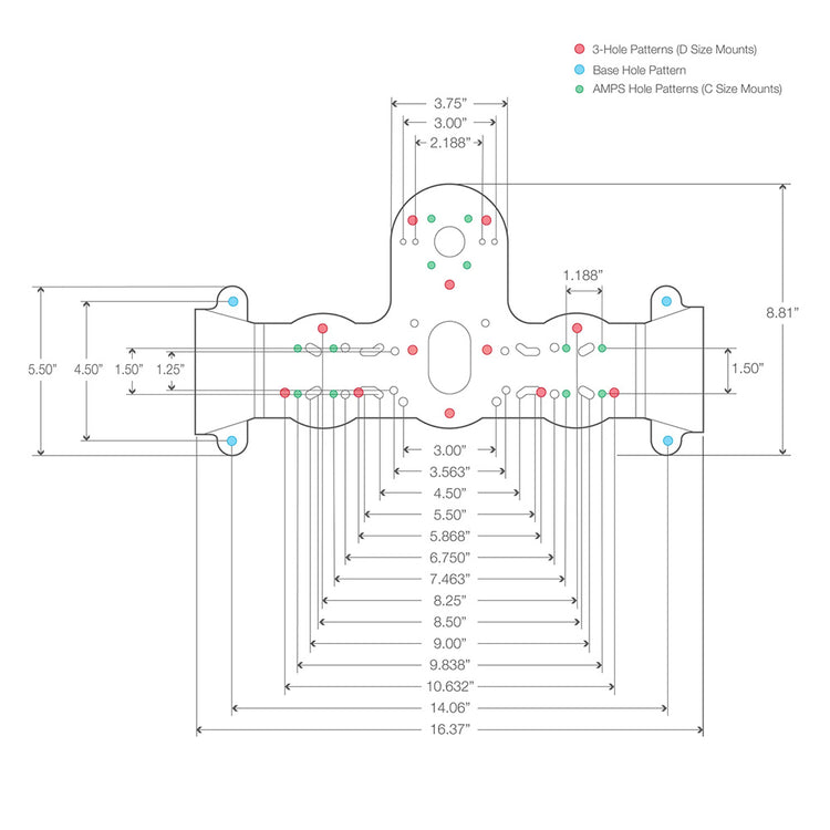 Includes AMPS and tri-hole patterns for RAM® D-size bases