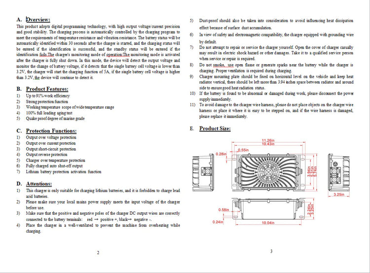 * Automatic BMS Reset: No more hassle with buttons or jump-starting! This charger automatically resets the Battery Management System (BMS) on drained batteries.