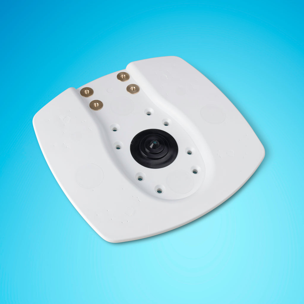 Seaview's innovative new modular electronic mounts feature a unique universal plate design that provide a cleaner look and greater installation flexibility.  A pre-drilled anodized aluminum plate is incased inside the UV stable white ABS plastic.  There are dimple holes on the top surface of the top plate that matches up with a drill template allowing you to precisely drill the appropriate holes for your specific radar.  The end result is a nice clean look with no unwanted visible holes.
