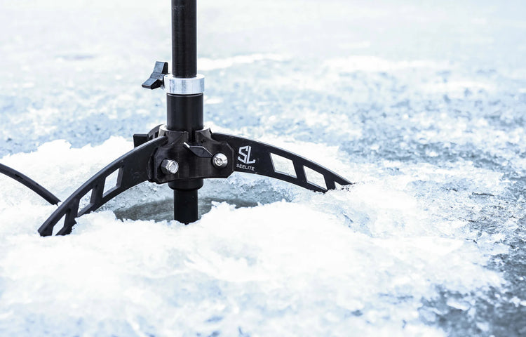 After the success of our original SeeFish Transducer mount and our SeeFish 2.0 for boat applications. We decided to come out with our very own Ice Fishing Pole. The pole is powder coated aluminum with all aluminum parts. The claw mount is anodized aluminum legs with stainless hardware for the legs. These legs will fold in and out and have stop points at the open and close positions. Works on up to 12” ice hole. The length of the pole will be 34" with a 7" handle. Check out our ice fish/boat all in one system if interested in a system that will allow you to use this pole for both applications. We are selling a full system or just the tripod ice base if you already own one of our poles.